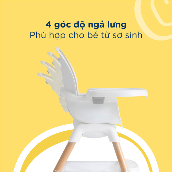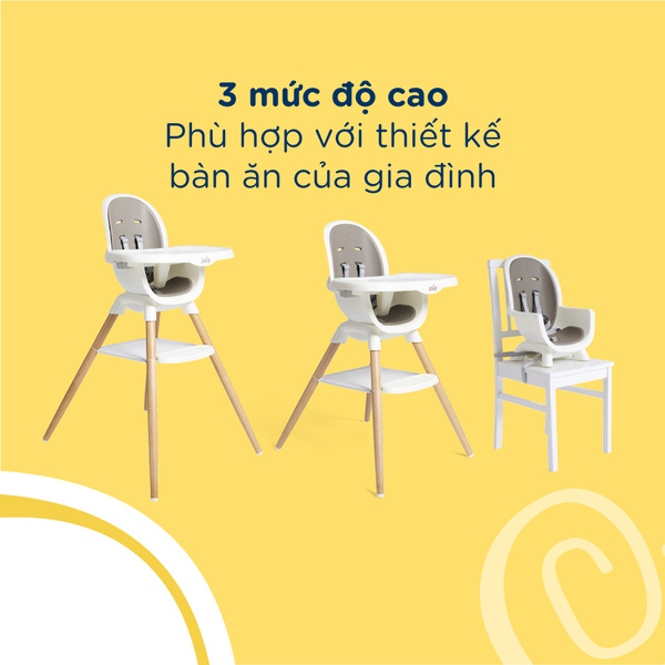 - 3 mức điều chỉnh độ cao phù hợp bàn ăn, bàn bếp và từng giai đoạn phát triển của bé